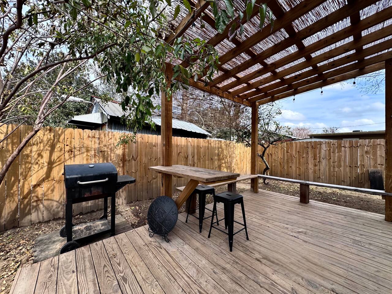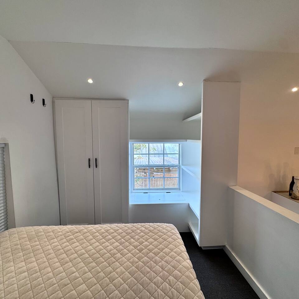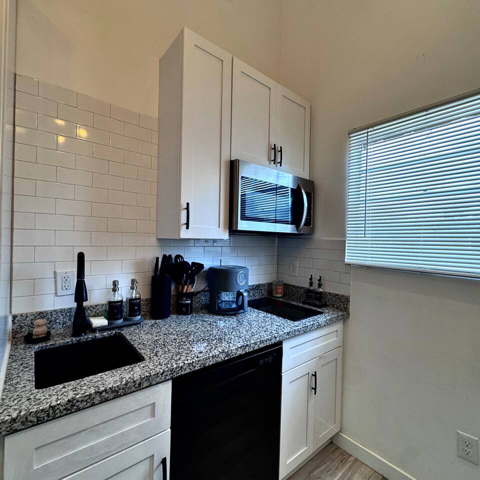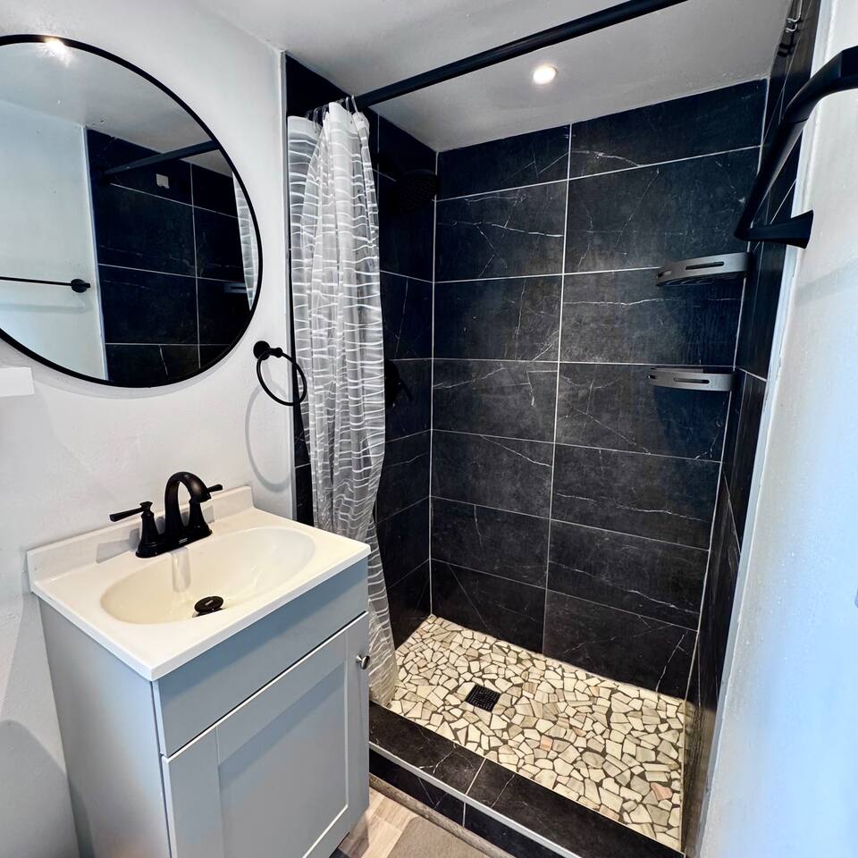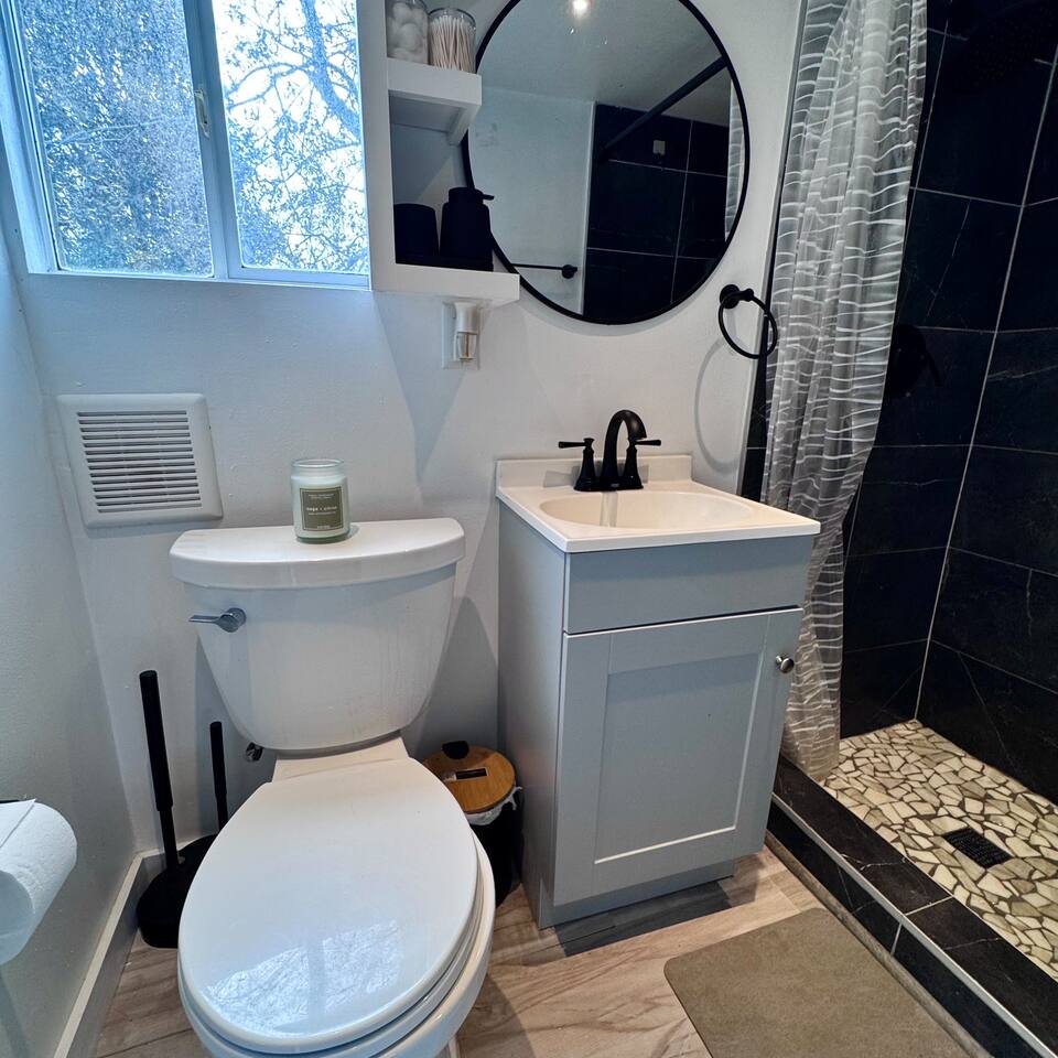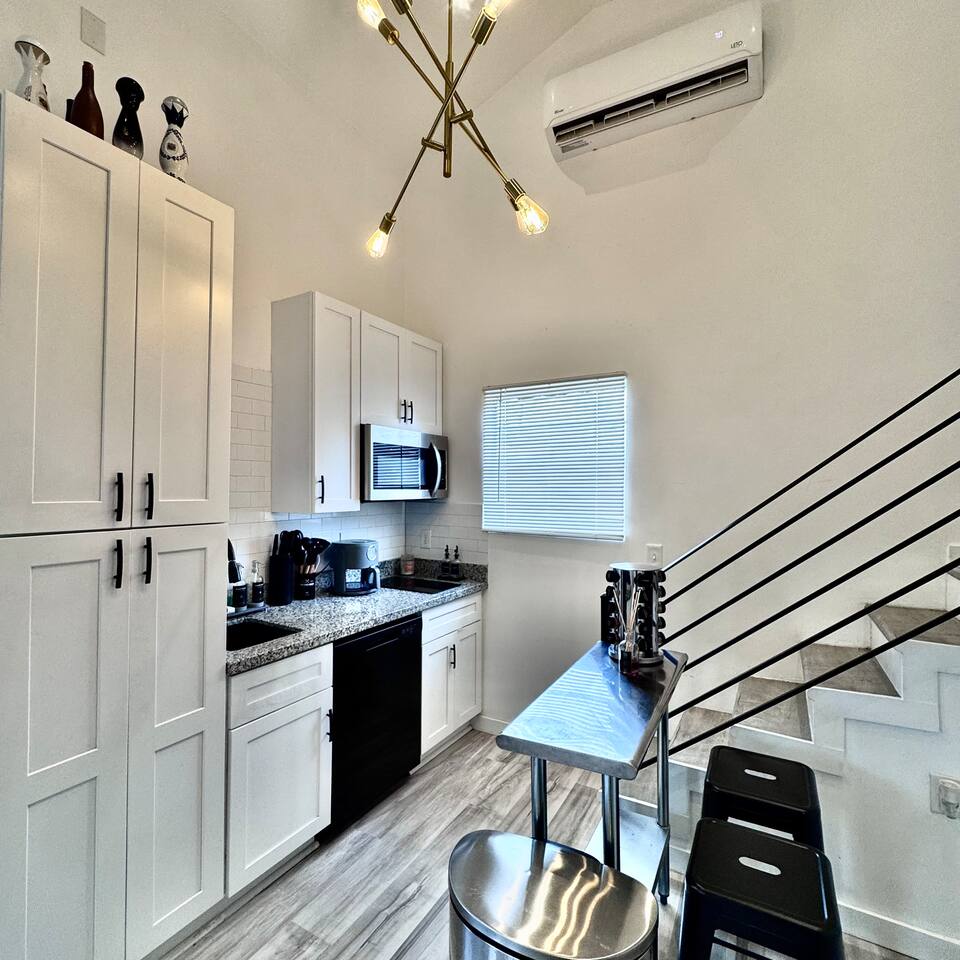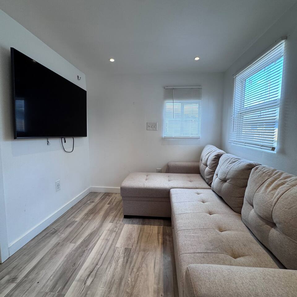 THE SPACE LIVING AREA A spacious and cozy area designed for your comfort. Relax on the sofa bed while enjoying a large Smart TV, perfect for watching your favorite sports or movies. KITCHEN A modern-design kitchen with everything you need to feel at home. Fully equipped with a microwave, glass cooktop, coffee maker, and refrigerator. We also provide coffee, sugar, and creamer to start your day right. The kitchen includes a breakfast bar for two. BEDROOM Located on the second floor, this bedroom is your private retreat. It features a comfortable queen-size bed, a wardrobe, and a cozy window seat with a garden view, perfect for reading, relaxing, or simply enjoying the atmosphere. COVERED DECK Enjoy a spacious private deck, perfect for unwinding and creating unforgettable moments. Equipped with a charcoal grill, a large table for meal preparation, and a surrounding bench, this space is ideal for hosting a barbecue, having breakfast outdoors, sipping your morning coffee, or simply spending time in a peaceful and inviting environment. The perfect spot to connect with nature without leaving home! A space designed to offer the best experience in New Orleans. We look forward to hosting you!