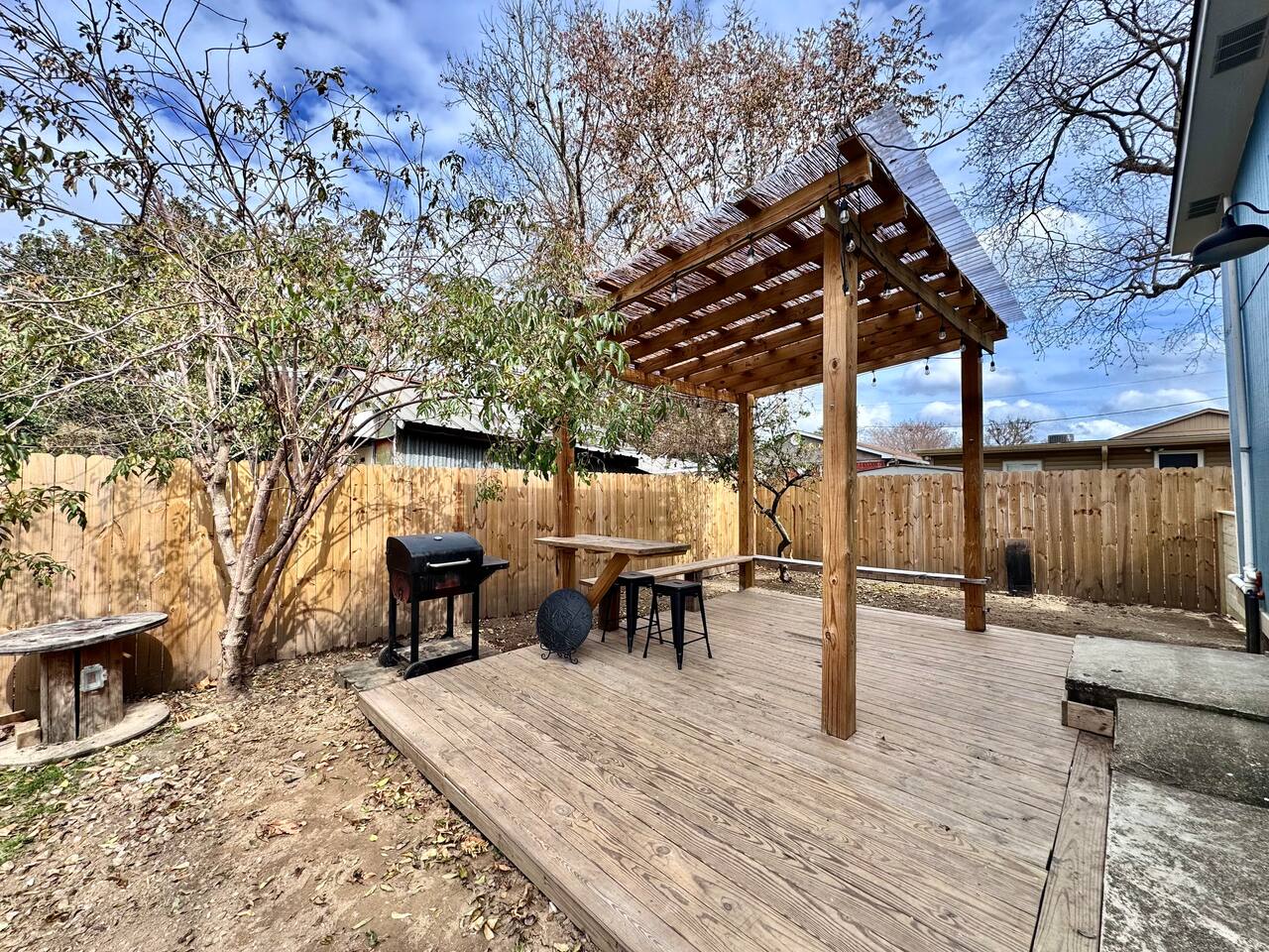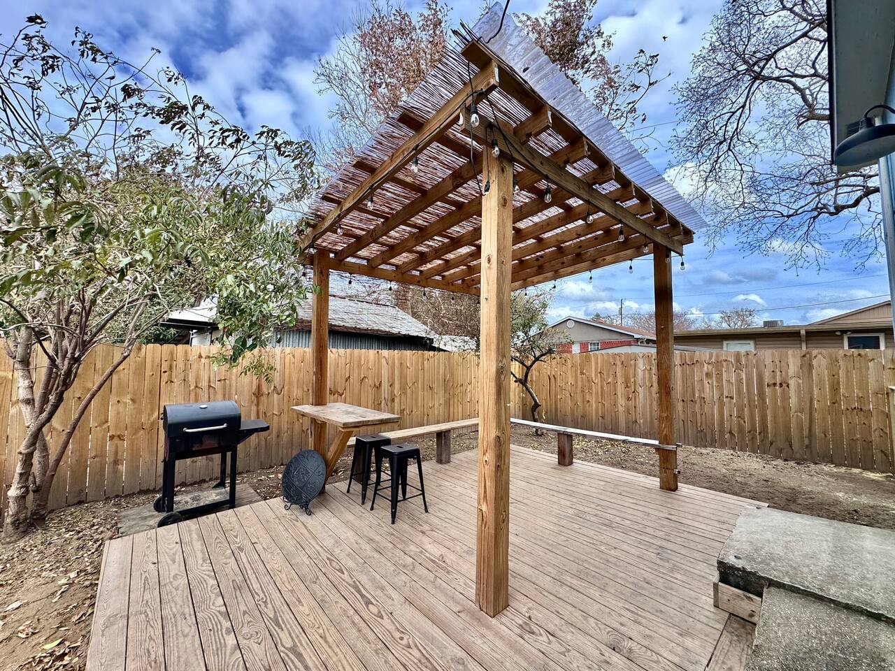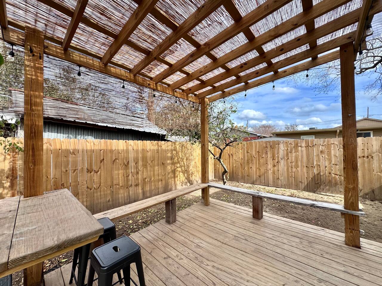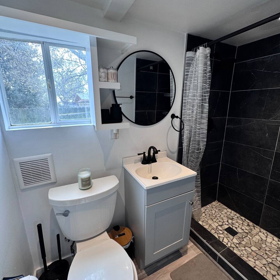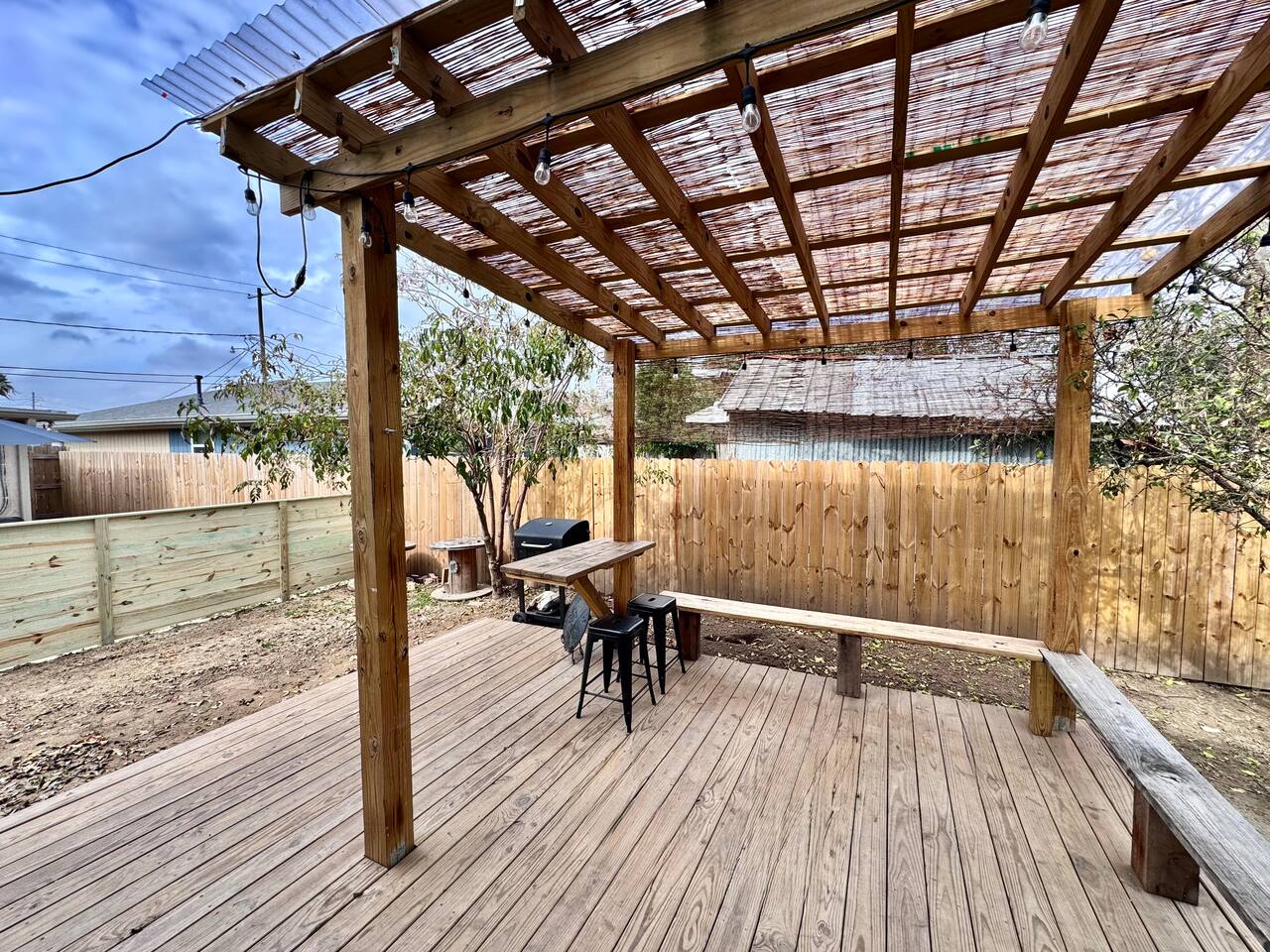 THE SPACE LIVING AREA A spacious and cozy area designed for your comfort. Relax on the sofa bed while enjoying a large Smart TV, perfect for watching your favorite sports or movies. KITCHEN A modern-design kitchen with everything you need to feel at home. Fully equipped with a microwave, glass cooktop, coffee maker, and refrigerator. We also provide coffee, sugar, and creamer to start your day right. The kitchen includes a breakfast bar for two. BEDROOM Located on the second floor, this bedroom is your private retreat. It features a comfortable queen-size bed, a wardrobe, and a cozy window seat with a garden view, perfect for reading, relaxing, or simply enjoying the atmosphere. COVERED DECK Enjoy a spacious private deck, perfect for unwinding and creating unforgettable moments. Equipped with a charcoal grill, a large table for meal preparation, and a surrounding bench, this space is ideal for hosting a barbecue, having breakfast outdoors, sipping your morning coffee, or simply spending time in a peaceful and inviting environment. The perfect spot to connect with nature without leaving home! A space designed to offer the best experience in New Orleans. We look forward to hosting you!