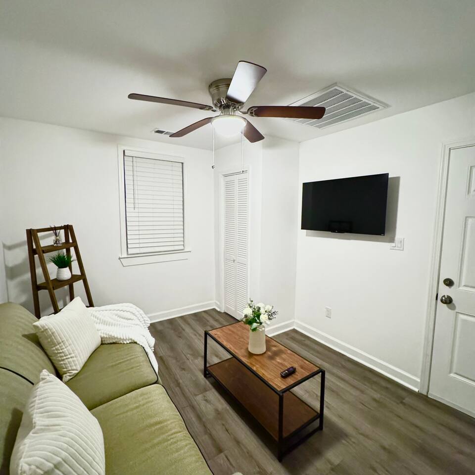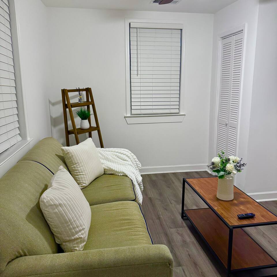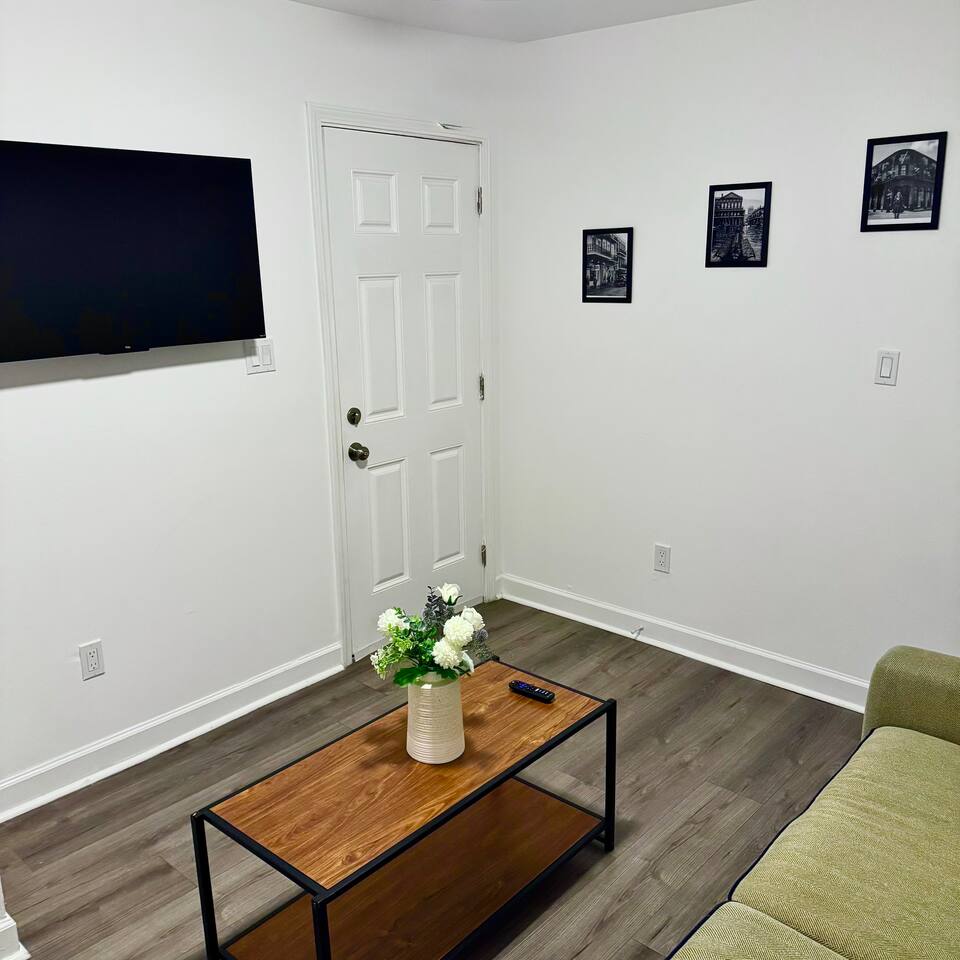 This renovated apartment in 2023 is located in a safe and quiet area. It features 1 bedroom, 1 bathroom, a kitchen, dining area, and living room, accommodating up to 4 guests with a comfortable sofa bed. Its great location allows you to walk to Caesars Superdome and Smoothie King Center, and it’s also near Canal Street. With quick access to major highways, getting around the city is easy and convenient. A perfect choice for your stay! Nearby Attractions ★ Caesars Superdome – Walking distance ★ Smoothie King Center – Walking distance ★ Canal Street – 0.8 mi ★ French Quarter – 1.3 mi ★ Bourbon Street – 1.4 mi ★ The Riverwalk Outlets – 1.6 mi ★ Jackson Square – 1.7 mi ★ French Market – 1.9 mi ★ City Park – 4.3 mi The Space The apartment is designed for comfort and functionality. It is divided into a living room, kitchen, bedroom, and bathroom, creating a cozy and well-distributed space. With a capacity for 4 guests, it includes an additional sofa bed to ensure a comfortable and pleasant stay. LIVING ROOM Enjoy a cozy living space with a queen-size sofa bed, Smart TV, and a closet for added convenience. The window offers a stunning view of the Smoothie King Center and Caesars Superdome, perfect for relaxing and taking in the surroundings. KITCHEN Our kitchen is fully equipped with a refrigerator, microwave, stove with oven, and coffee maker. It includes all the necessary utensils for cooking. As a courtesy, we provide coffee, creamer, and sugar so you can enjoy a great cup anytime. BEDROOM The bedroom is spacious and features a queen-size bed, nightstand, and a large closet where you can conveniently organize your luggage. BATHROOM The bathroom features a single vanity, toilet, and a bathtub with a shower. It is fully stocked with shampoo, conditioner, and body wash. We also provide a complete set of body, face, and hand towels for each guest. LAUNDRY Although the apartment does not have an in-unit laundry, we do have a dedicated laundry area that you will have access to at any time whenever you need it.
